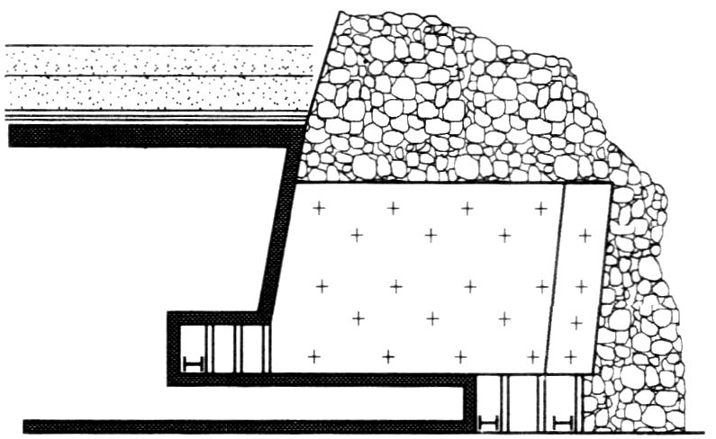 短壁工作面用风镐落煤,采落的煤先堆积于其下部伪斜小巷的溜煤槽内。各小巷内设挡煤板,当煤堆积到一定高度时,停止采煤,开始从下向上去掉挡煤板放煤。为防止煤炭窜到人工顶板上造成损失,可挂一胶皮挡煤板,使煤流落到伪斜小巷内。