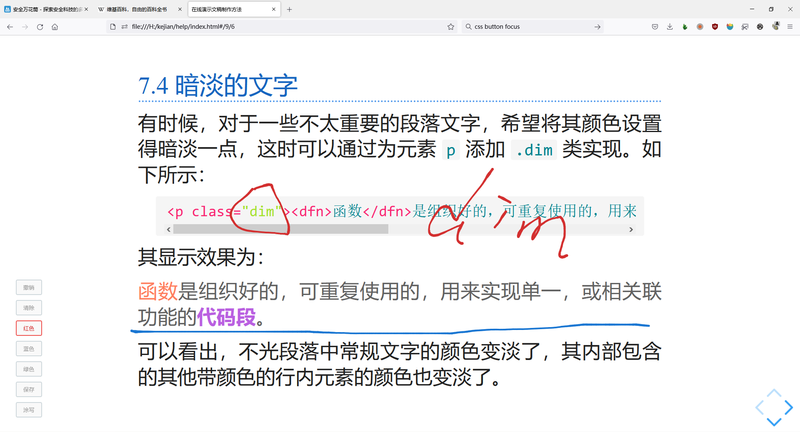 • 主要的开发工作:针对具体的教学需求,对字体、段落、版式、动画、放映、多媒体等,使用 CSS 定义了大量可选的样式,实现了 PowerPoint 的主要功能。
