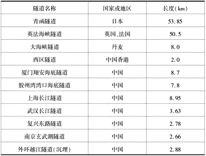 世界各国已建成的长度大于10km的公路、铁路隧道