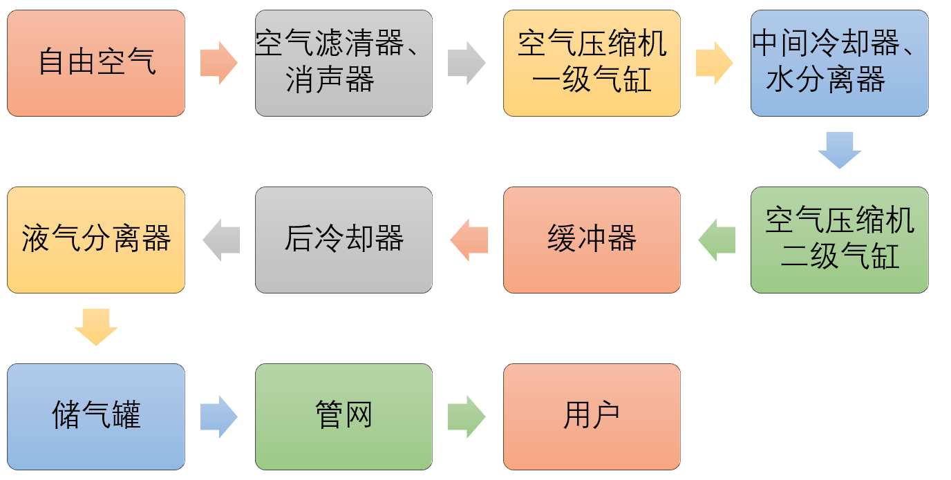 空气压缩机亦称压风机,是矿山四大固定设备之一(通、压、排、提升)。通过空气压缩机,可将自由空气压缩到所需要的压力而成为压缩空气,用以驱动风动机具,如风钻、风镐、抓岩机、风水泵、空气锤、铆钉机、锻钎机等。在矿山岩巷开拓中广泛应用的喷射混凝土技术,也是用压缩空气做喷射动力的。此外,矿山还经常用压缩空气进行清理水仓,驱动副井上、下口的风动操车设备和主井上、下口风动装卸载设备。因此,必须设置多台空气压缩机组成的压缩机站,以满足对压气的需求。