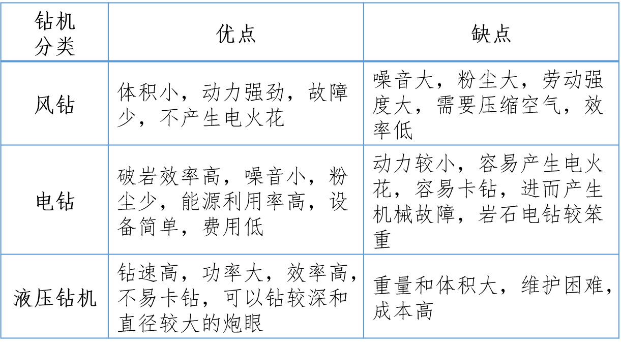 凿岩机按使用动力不同,分为风动凿岩机(简称凿岩机或风钻)、液压凿岩机及电动凿岩机。
