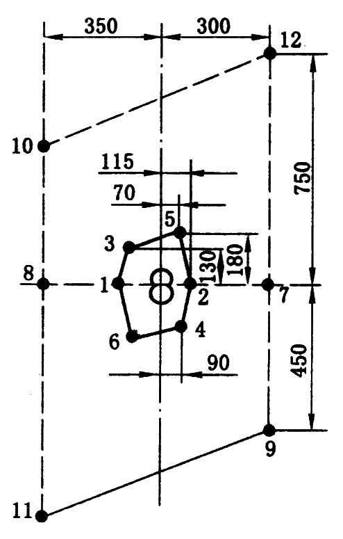 为了加强直眼掏槽的抛碴力和提高炮眼利用率,形成了以直眼掏槽为主并吸取斜眼掏槽优点的混合式掏槽。斜眼布置成垂直楔形,与工作面的夹角为:75°~85°,装药系数不要太大,以 0.4~0.5 为宜,在所有垂直槽眼起爆之后起爆,以发挥抛碴扩槽作用。