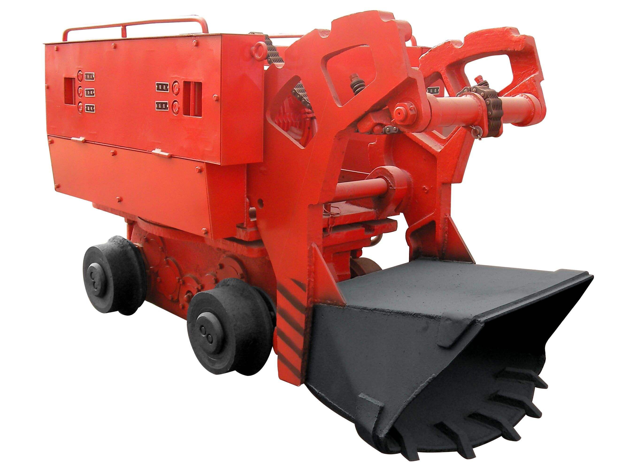 铲斗式装载机分为后卸式和侧卸式两种。后卸式铲斗装岩机适应性不强、生产能力小、机械化程度低,现只在小型煤矿使用。