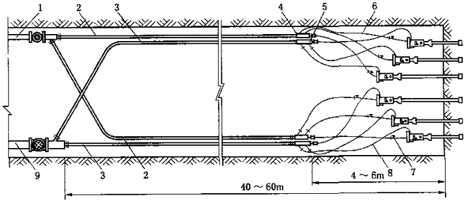 6,10—电机车;7—混凝土喷射机;8—空车;9—调车场