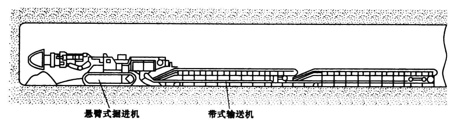 该施工作业工艺称为综合机械化掘进法(简称综掘法)。它能准确的控制巷道的设计轮廓,减少对围岩的破坏和超挖量,所以能减少支护工作量,喷射混凝土的消耗显著少于钻爆法。另外,自动化程度高、作业人员少,掘进速度可提高 2 倍以上,从而降低巷道的施工费用。