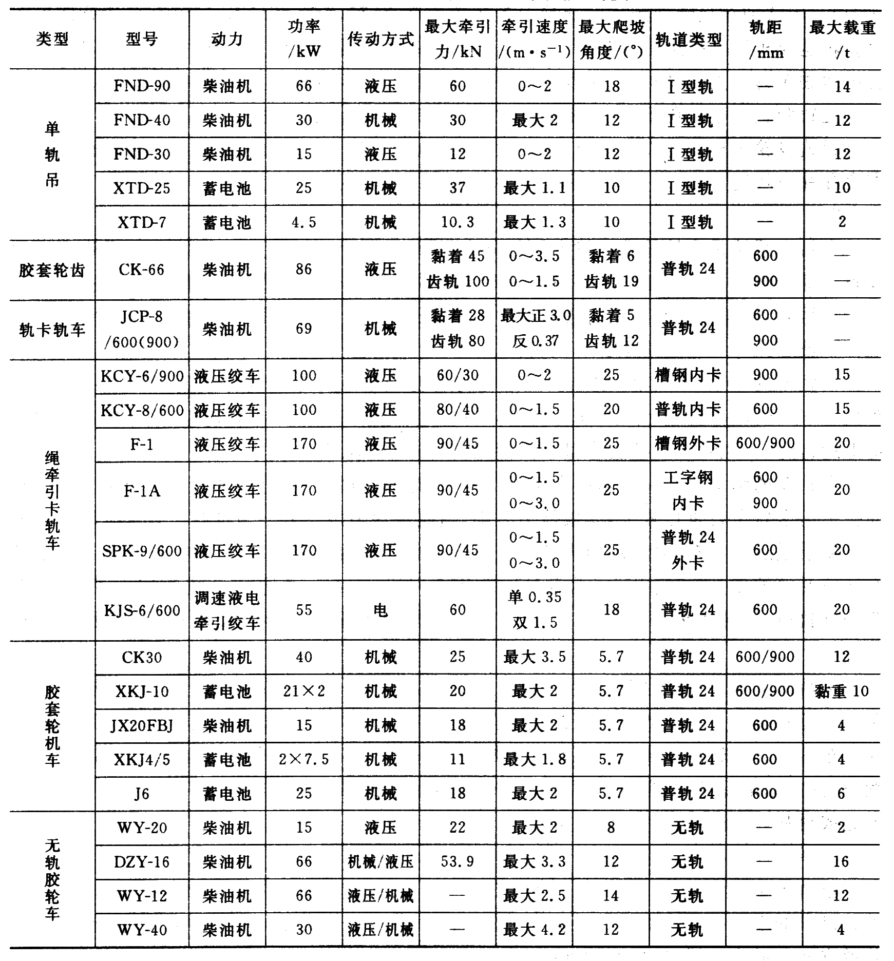 我国煤矿井下推广应用的辅助运输设备有单轨吊、卡轨车、齿轨车、无轨胶轮车等高效方式,以及小绞车、无极绳绞车等分段分散的较落后的辅助运输形式。