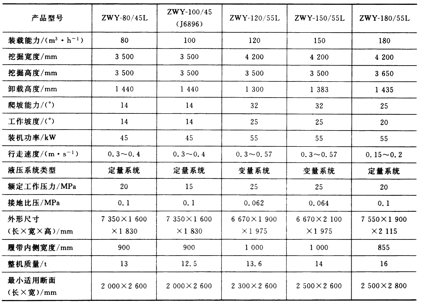 选择装载机主要应考虑巷道断面大小,装载机的适应性和可靠性,操作和维修的难易程度,装载机与其他设备的配套,以及装载机的造价和效率等因素,最后综合确定。目前使用较多的仍然是耙斗装载机,侧卸装载机次之,挖装机将会推广应用。实际可参照下页表进行选择。
