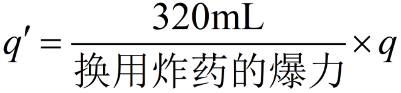 式中,320mL 为 2 号岩石硝铵炸药的爆力;q 为 2 号岩石硝铵炸药的定额消耗量,kg/m3。