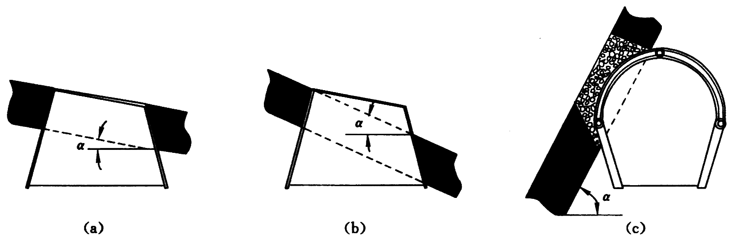 (a) 近水平及缓倾斜煤层(α<25°);(b) 倾斜煤层(α=25°~45°);(c) 急倾斜煤层(α>45°)
