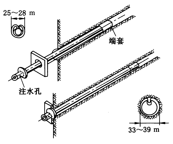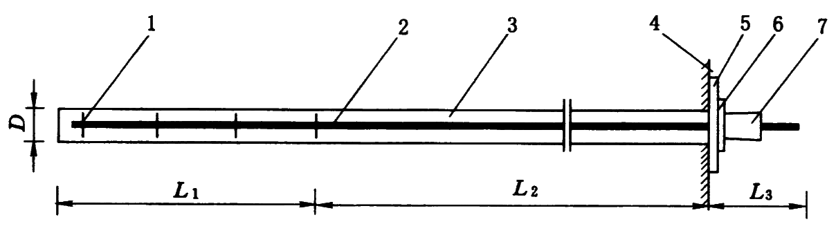 D—钻孔直径;L1—锚固段长度;L2—自由段长度;L3—外露长度
