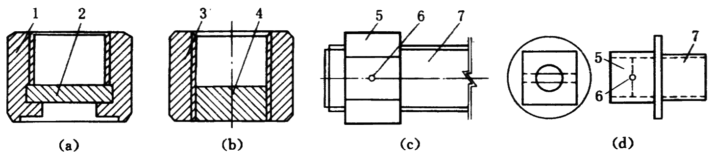 (a) 钢片填充式;(b) 树脂(尼龙)充填式;(c) 内销钉式;(d) 外销钉式