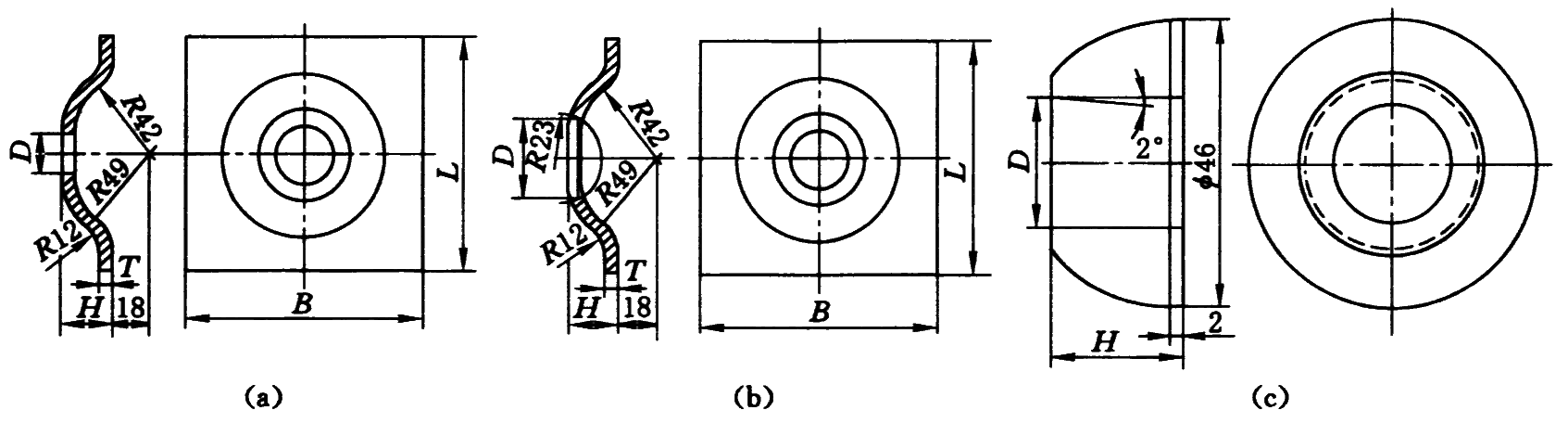 (a) A型托板;(b) B型调心托板;(c) 托板调心垫