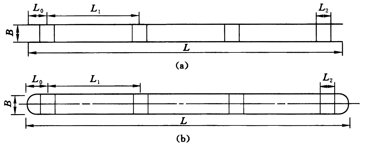 L—钢带长度;B—钢带宽度;L0—钢带端距;L1—锚杆孔间距;