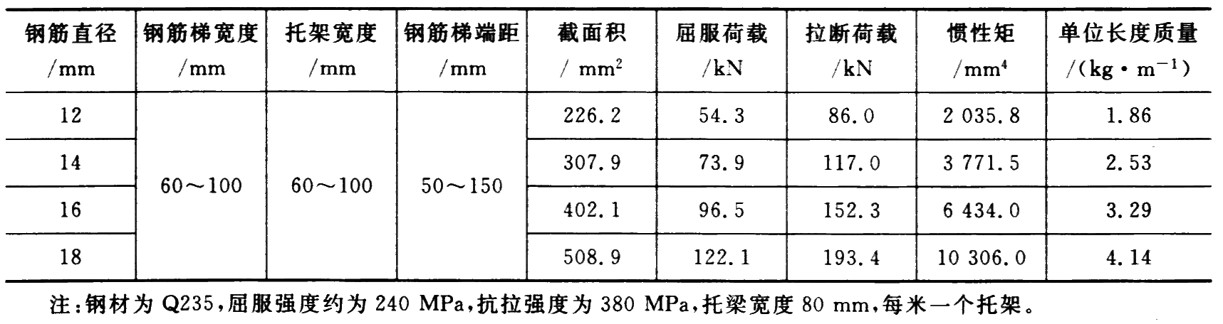 L—钢筋梯长度;B—钢筋梯宽度;L0—钢筋梯端距;L1—托架间距;L2—托架宽度