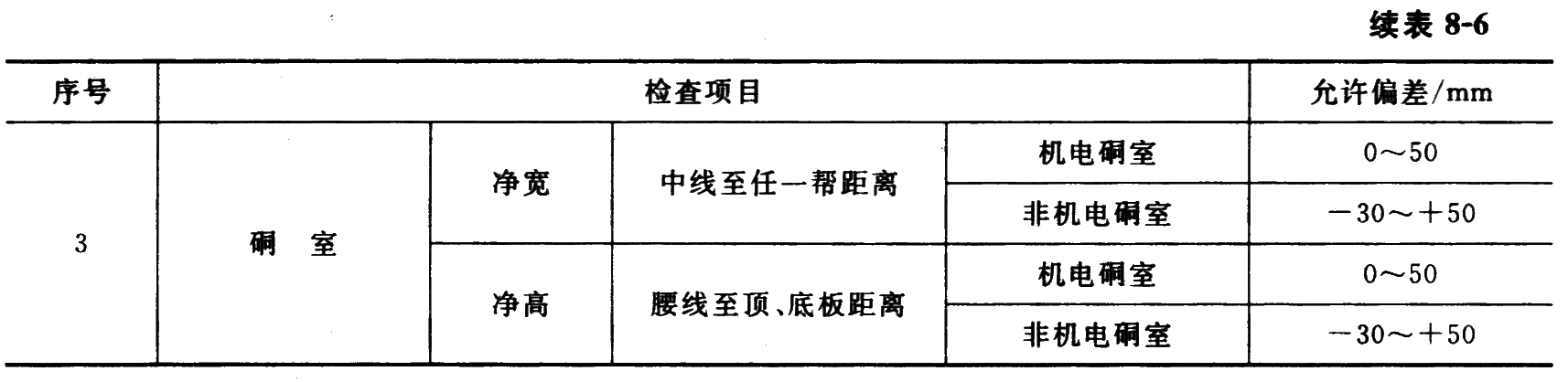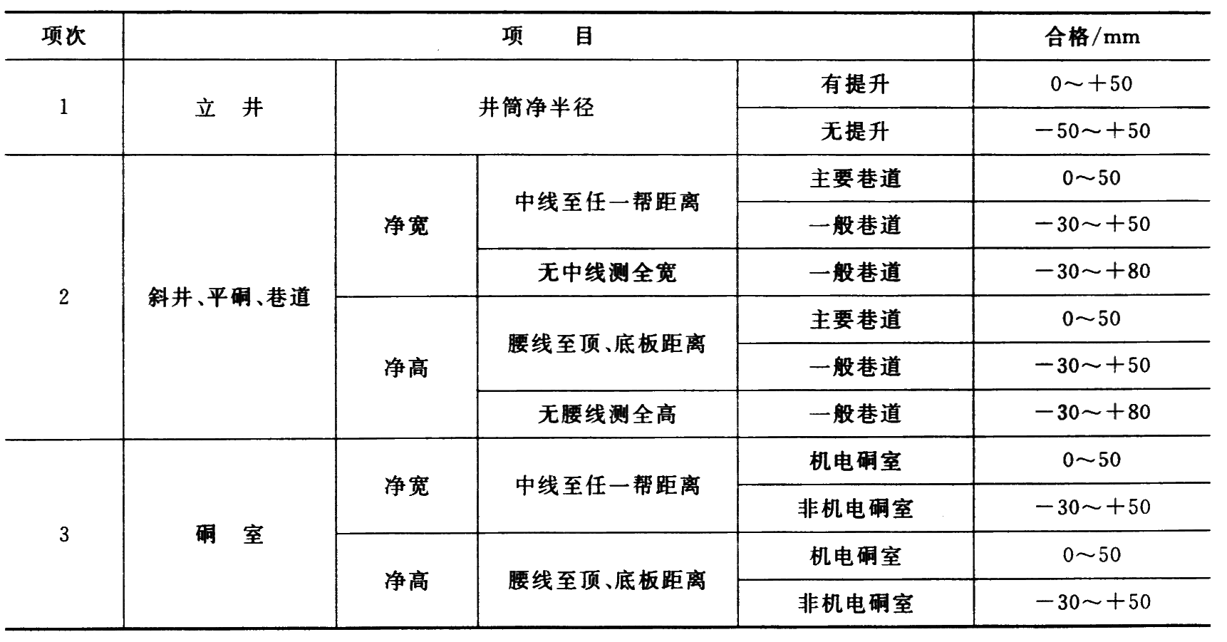 井巷混凝土、钢筋混凝土支护工程的断面规格允许偏差