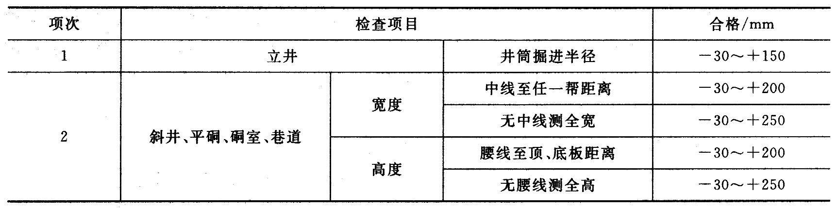 锚杆、锚网、锚网喷及喷射混凝土支护工程的断面规格允许偏差2
