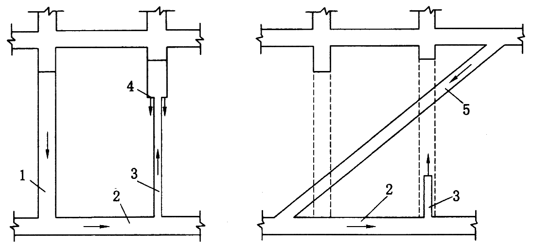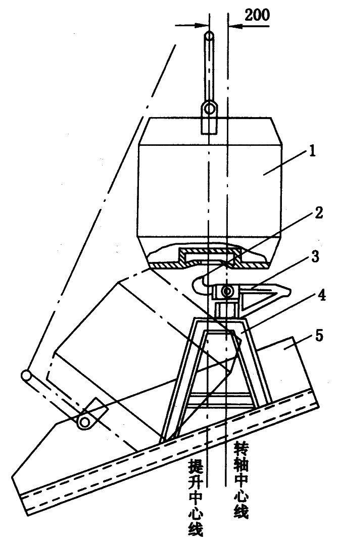 1—吊桶;2—座钩;3—托架;4—支架;5—卸矸门