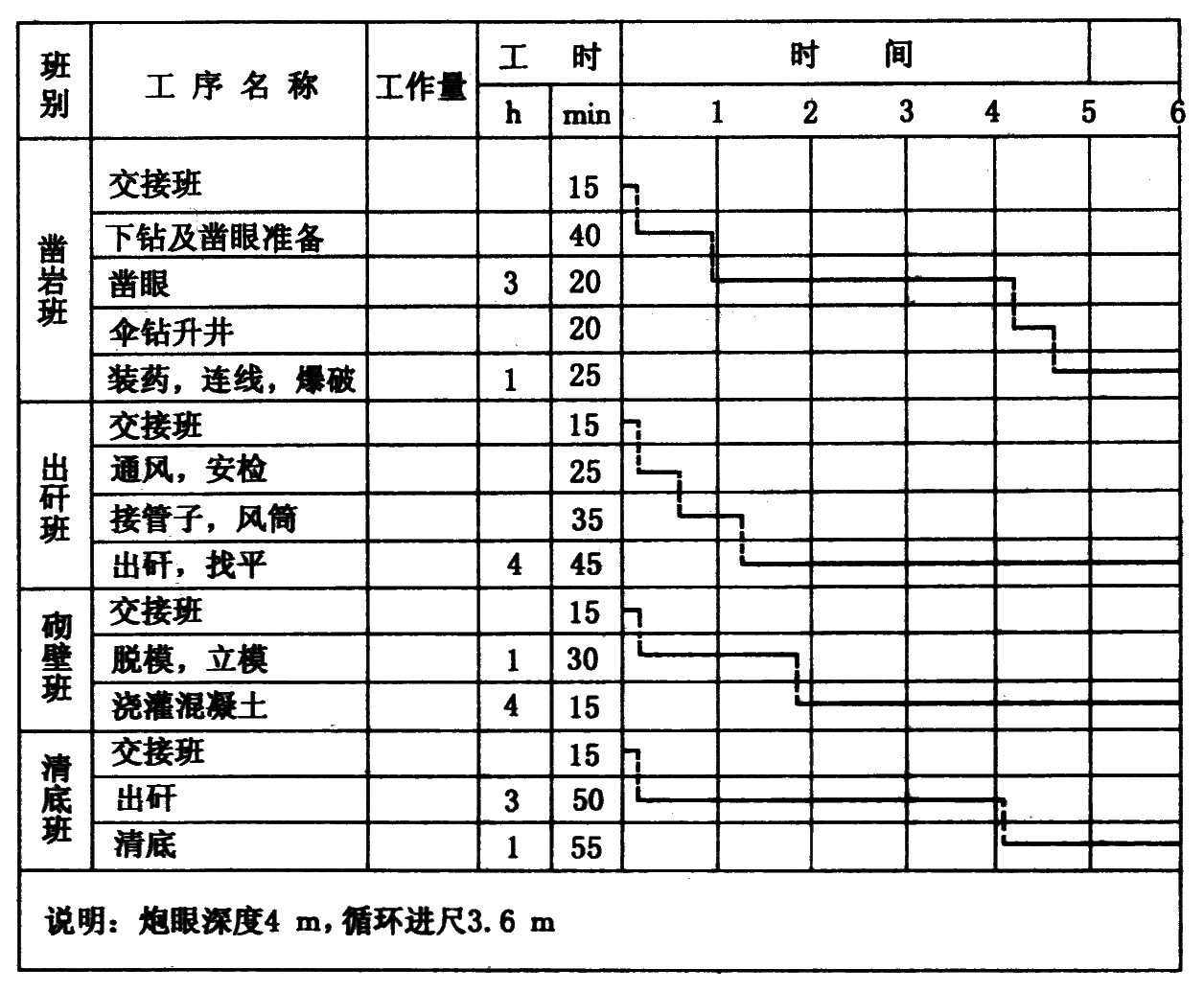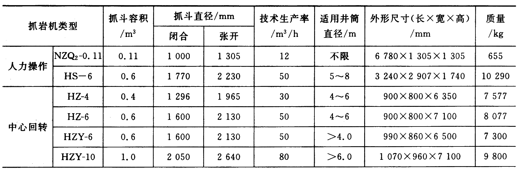 6—气动绞车;7—临时支护;8—抓岩机;9—吊桶