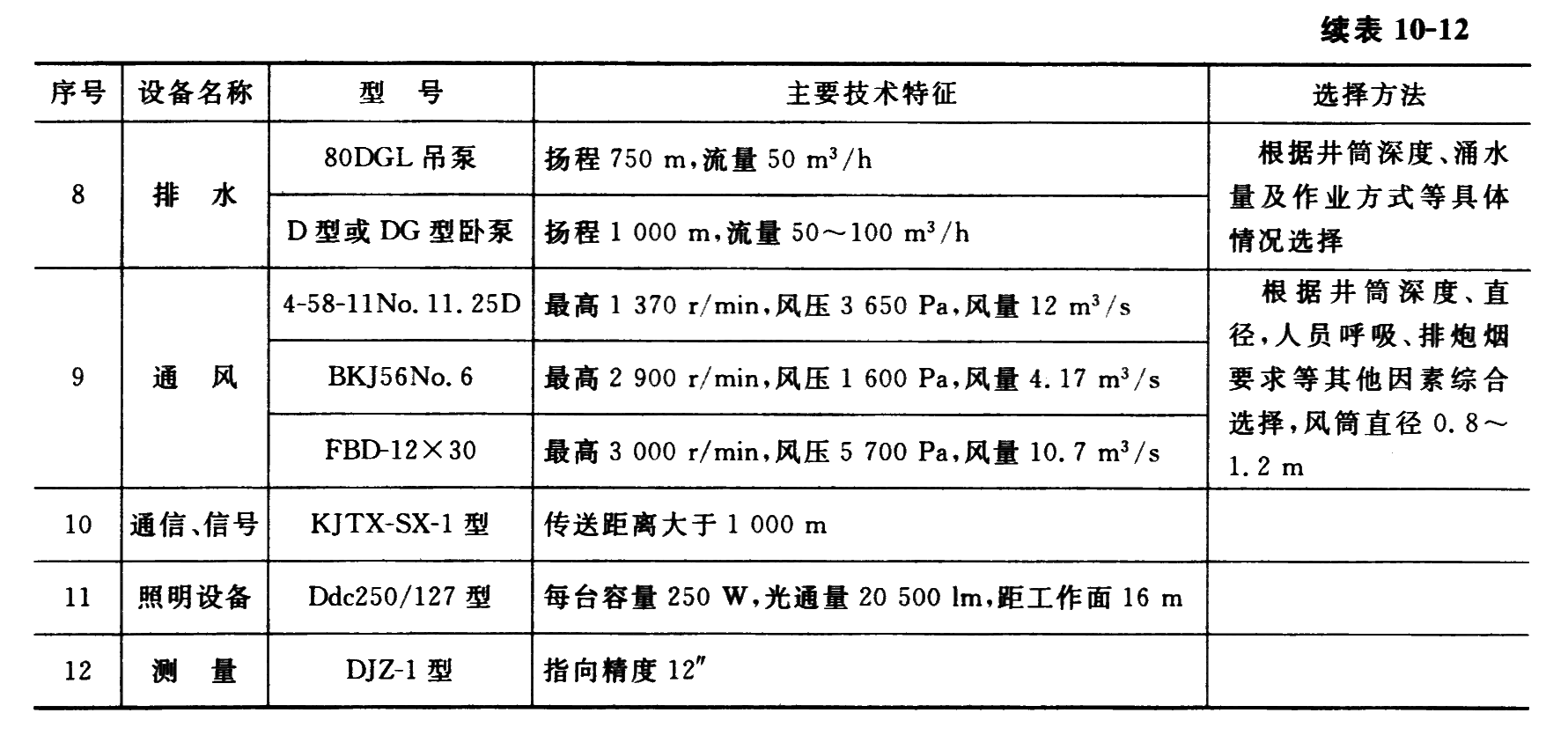 6—风筒;7—供水管;8—压风管;9—动力电缆;10—通信电缆;11—吊桶(2m³);