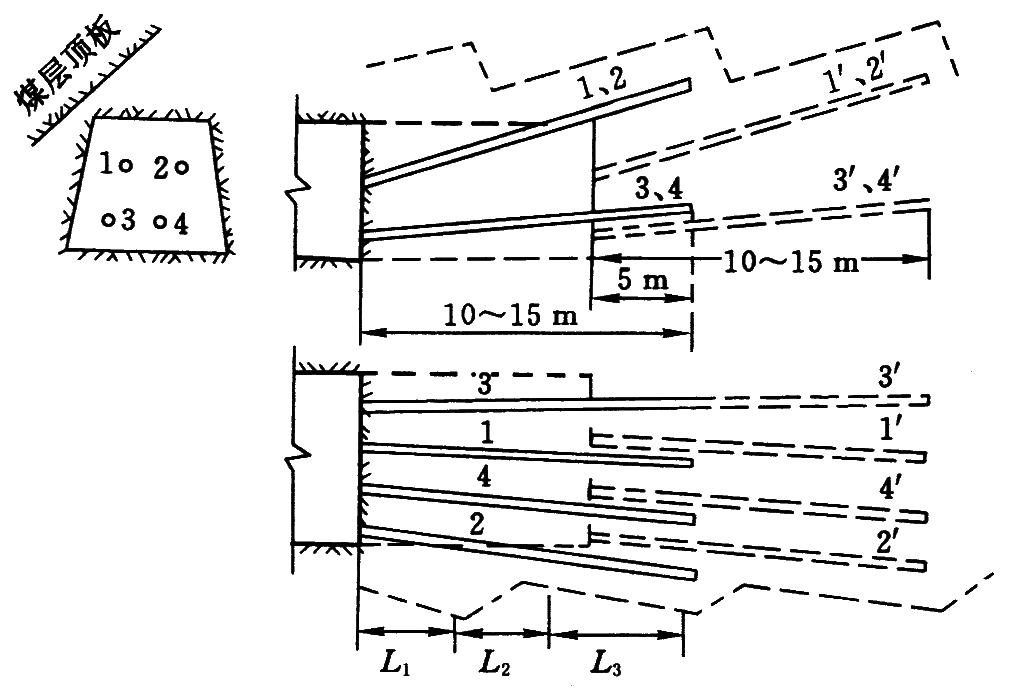 L1—卸压带;L2—集中应力带;L3—常压带