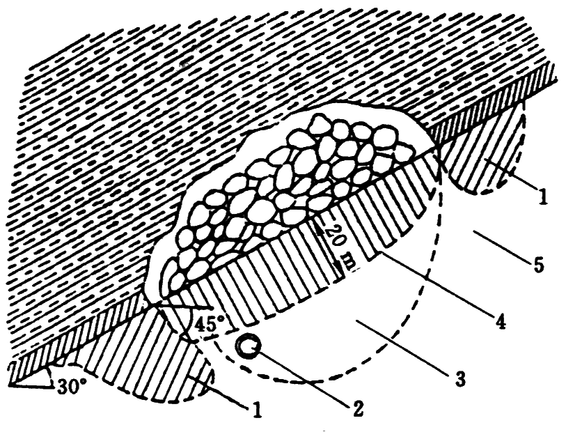 3—应力降低区;4—移动支承压力有害影响区;5—原岩应力区