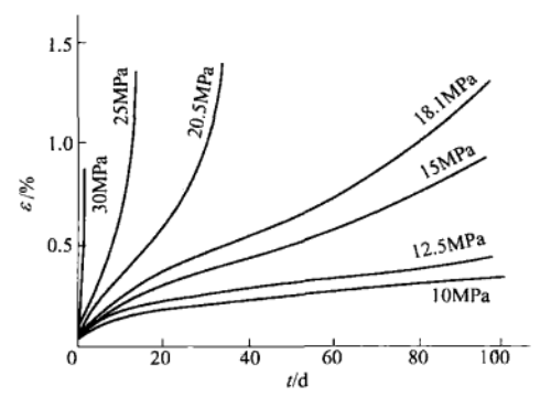 不同应力条件下岩石的蠕变曲线并不相同,如右图: