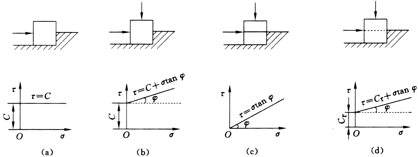 (a)抗切实验;(b)抗剪实验;(c)摩擦实验;(d)重剪实验