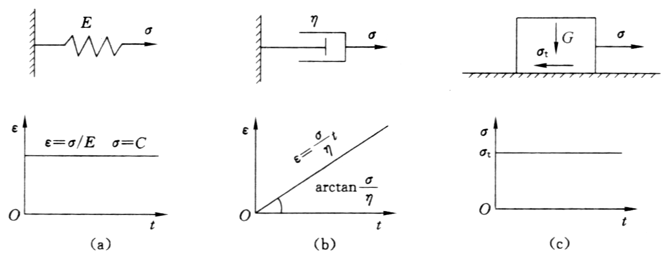 流变的物理力学过程十分复杂,通常应用基本元件建立流变模型。所有的流变模型均可由三个基本元件组合而成: