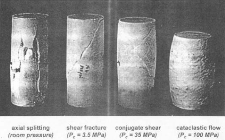 岩石的塑性变形是指岩石在外力作用下当超过其屈服极限应力时仍能发生变形,撤去外力后不能完全恢复其原始状态的性质,亦称残余变形。它包括: