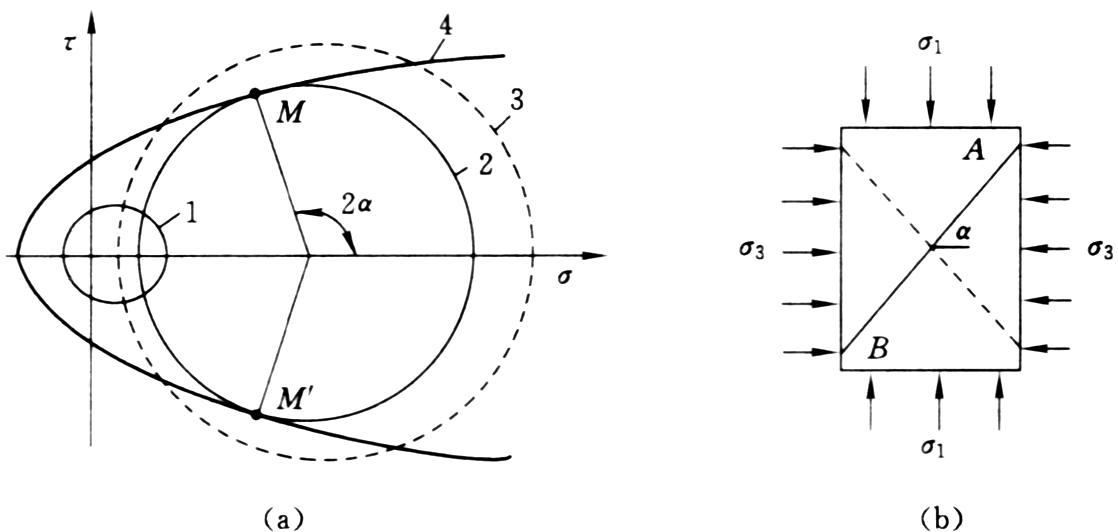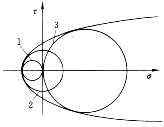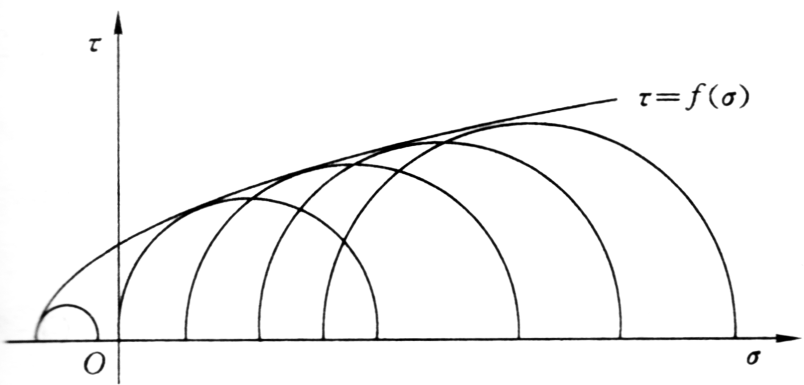 莫尔(Mohr)于1900年提出了莫尔强度理论,认为材料发生破坏是由于材料在某一面上剪应力达到一定的限度(即极限剪应力),而这个剪应力与材料本身性质和正应力在破坏面上所造成的摩擦阻力有关。即材料发生破坏除了取决于该点的剪应力,还与该点正应力相关。
