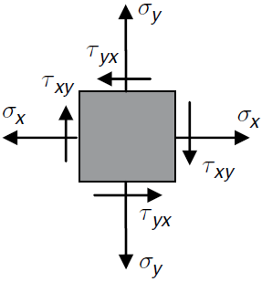 \[\sigma_{ij} = \begin{bmatrix} \sigma_{x} & \tau _{xy}\\ \tau_{yx} & \sigma_{y} \end{bmatrix}\]