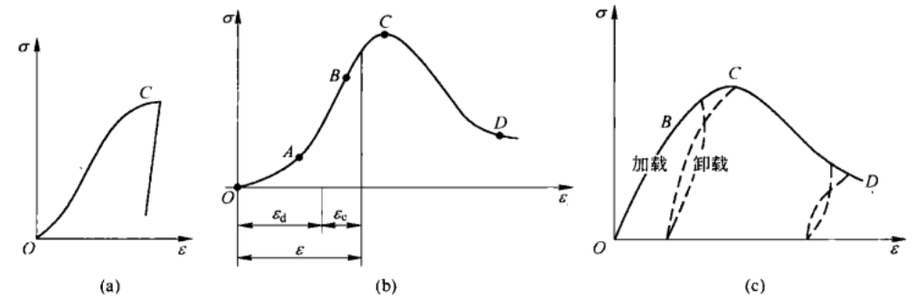 (a)普通试验机;(b)刚性试验机;(c)刚性试验机反复加卸载