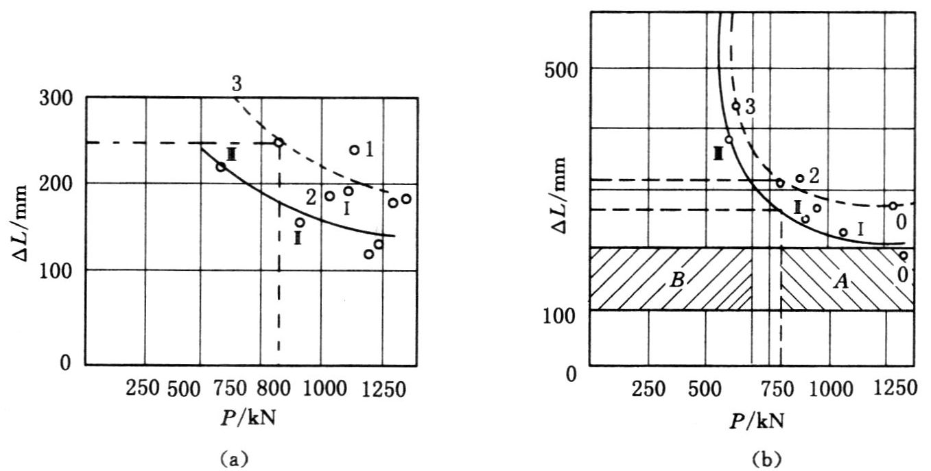 支架工作阻力与顶板下沉量的关系在一定程度上反映了支架与围岩的相互作用关系。试验表明,支架工作阻力 P 与顶板最终下沉量 ΔL(即由煤壁到采空区一侧)是一近似的双曲线,或称为“P—ΔL”曲线。