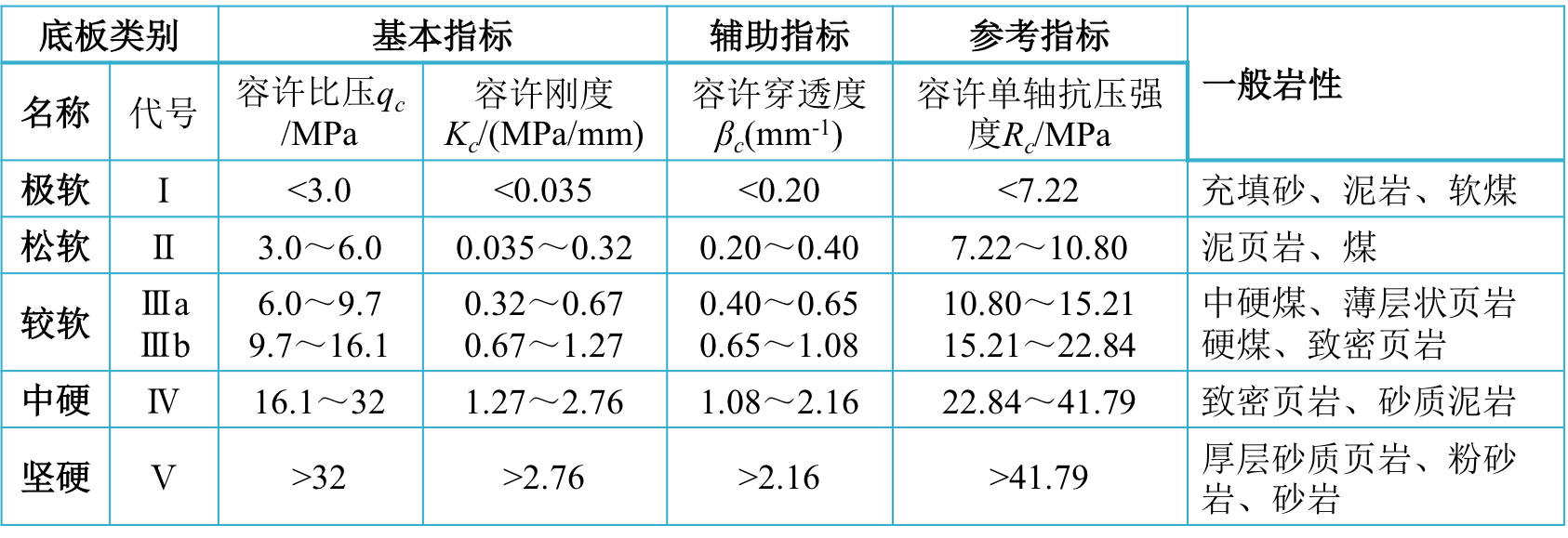适用性:优先适用于直接顶为1、2、3类,基本顶Ⅰ、Ⅱ、Ⅲ级,底板为Ⅱ类以上的条件。