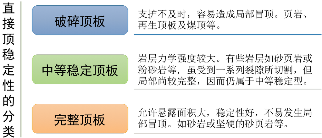 直接顶的稳定性对支架的选型、支护方式以及对引起工作面局部冒顶常常起主导作用。