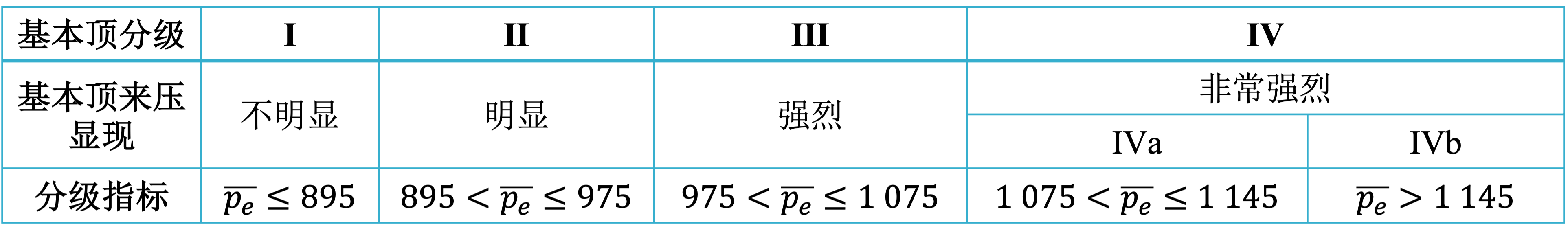 用基本顶初次来压当量 pe 分类
