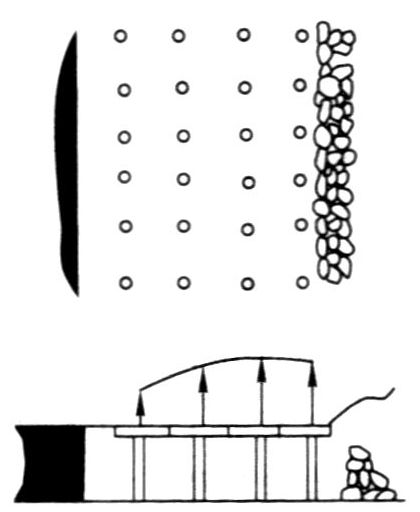 1—临时支柱;2—正式柱